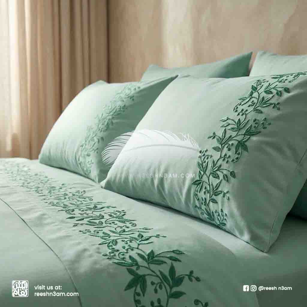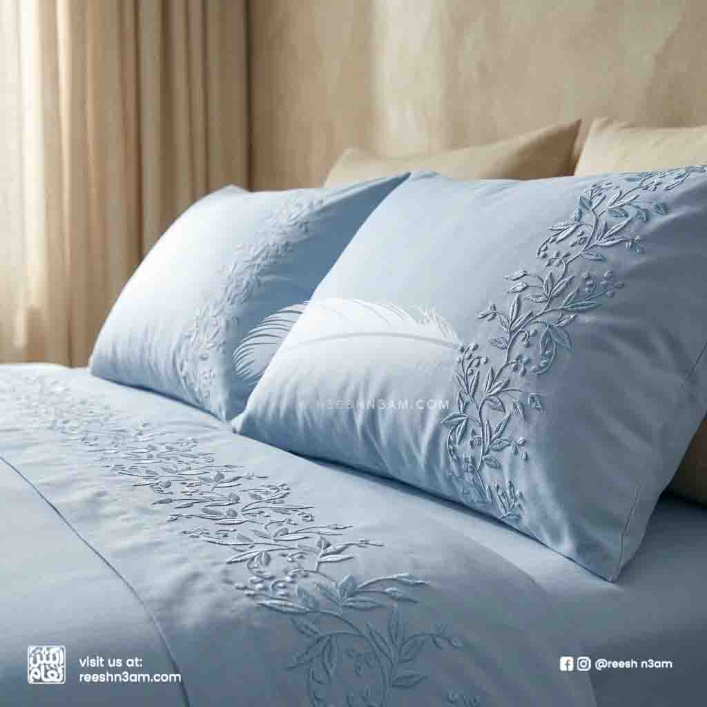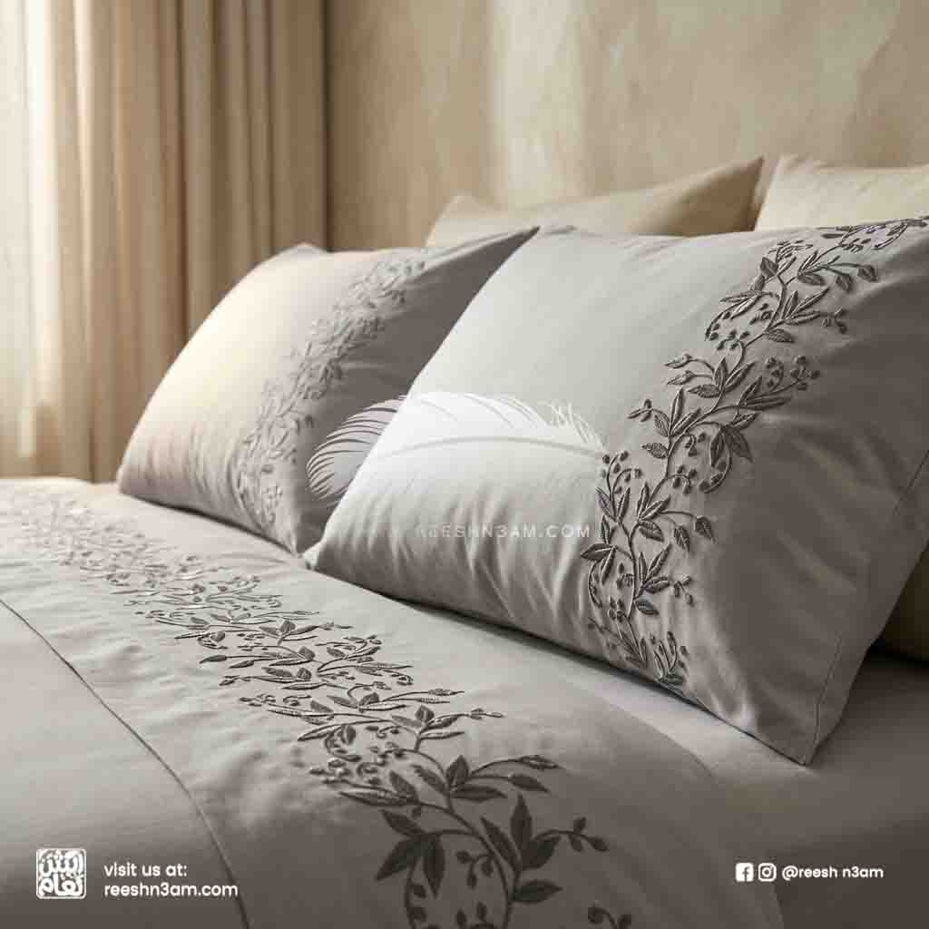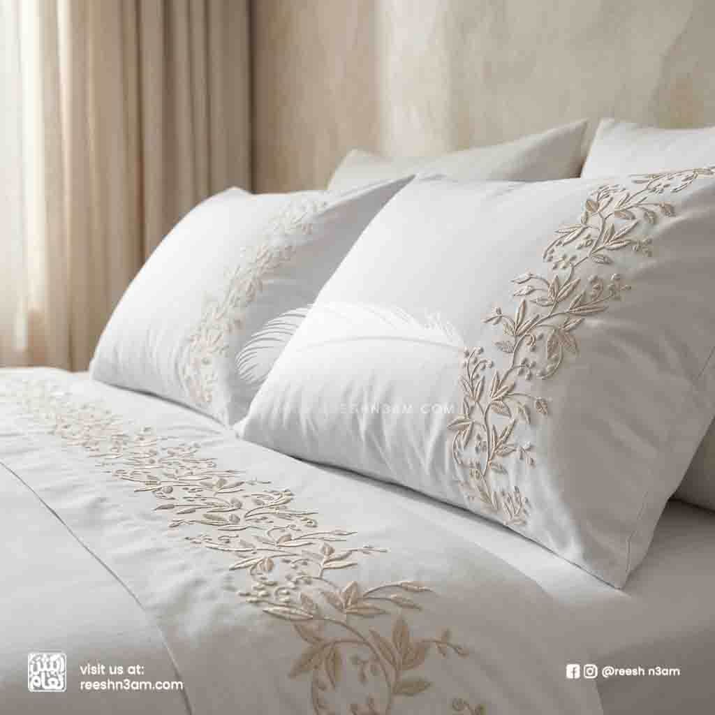 طقم سرير مطرز قطن 100% من ريش نعام هو اختيارك المثالي لو بتدور على الفخامة والراحة في نفس الوقت.