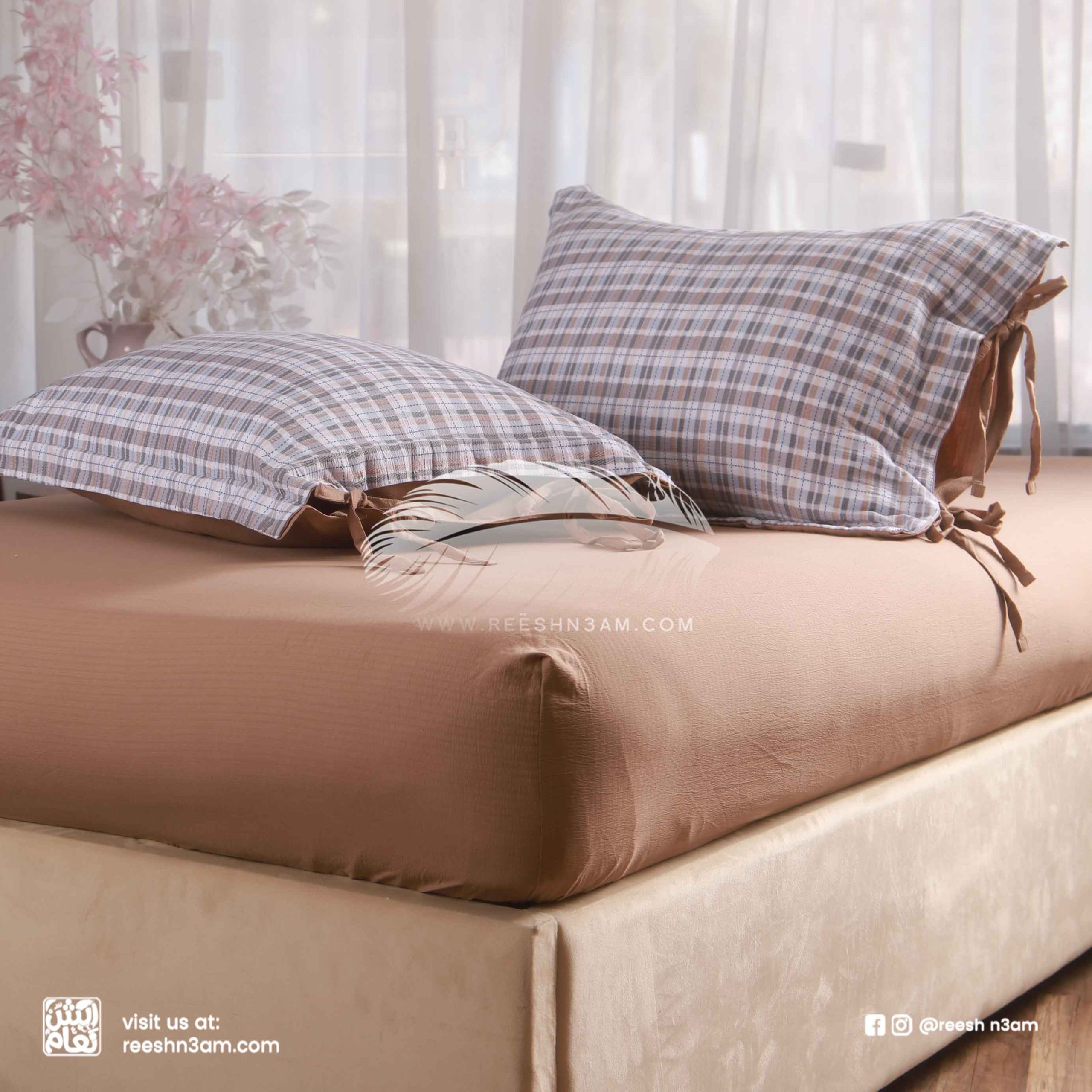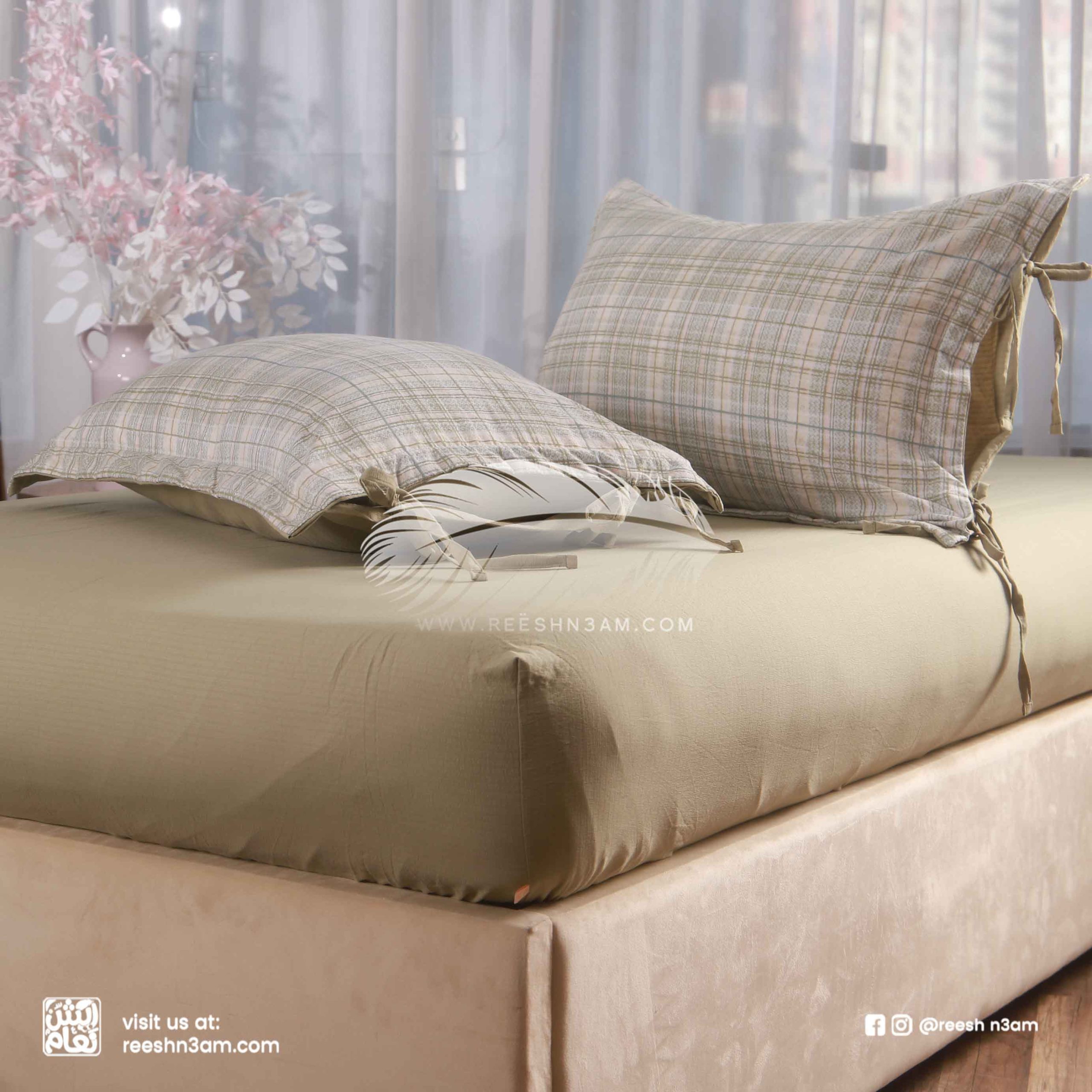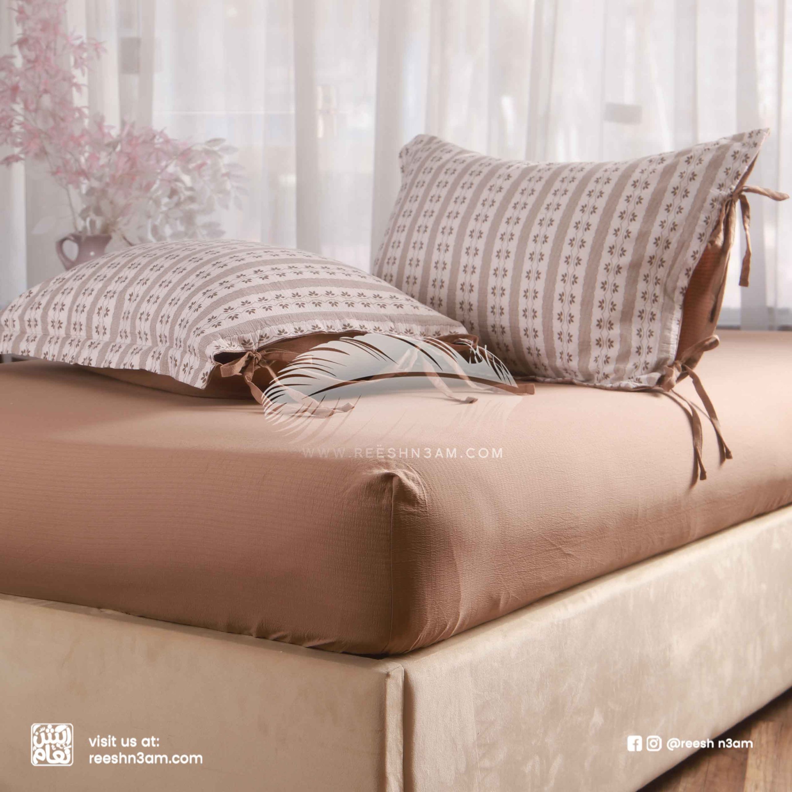 طقم سرير استك قطن 100% من ريش نعام بخدادية ماتشينج مع الملايا. متوفر بمقاسات 120 و160 و180. راحة وأناقة لا مثيل لها لغرفة نومك.