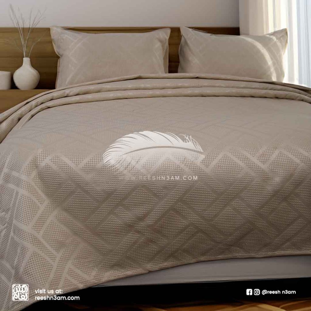 كوفرتة سوفت بتفاصيل شراشيب أنيقة بتجمع بين الراحة والفخامة في تصميم واحد. خامة ناعمة ومميزة من ريش نعام بتدي لمسة دافئة وشيك لغرفة نومك.