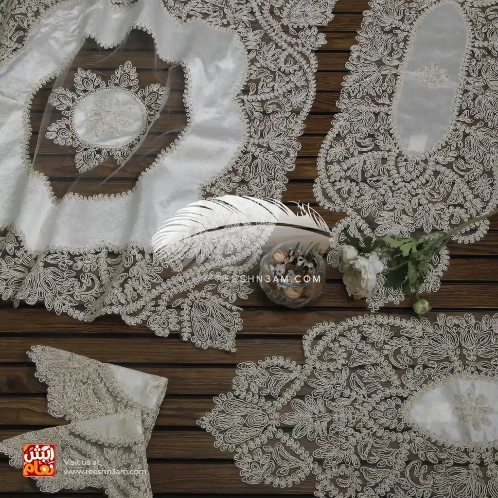طقم مفرش سفرة مطرز – استيراد ريش نعام – 16 قطعة